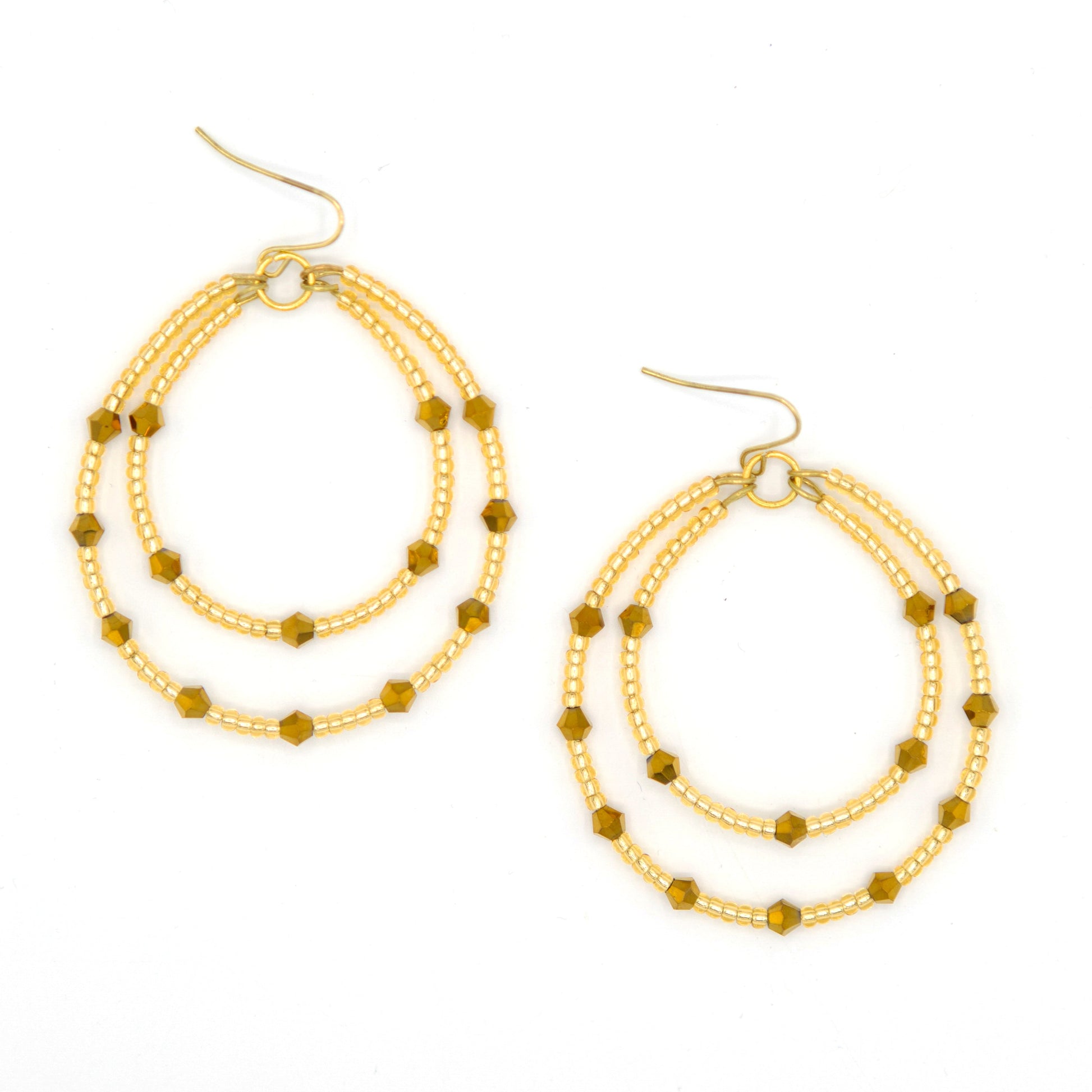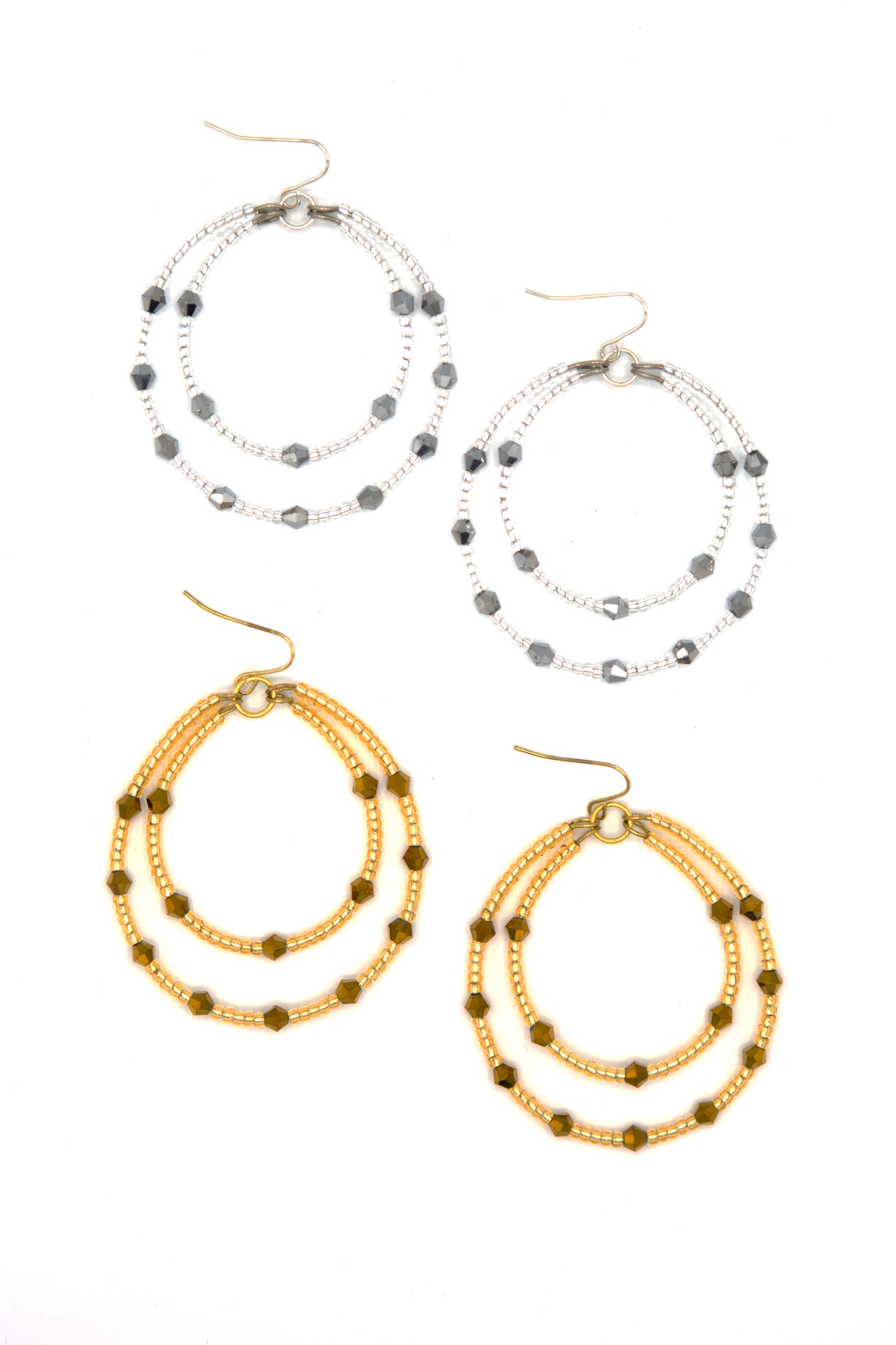 Elevate your everyday look with the effortless shimmer of our Halo Beaded Earrings. Featuring two concentric loops of hand-strung glass beads accented with faceted crystals, these earrings catch the light beautifully while keeping things lightweight and comfortable.