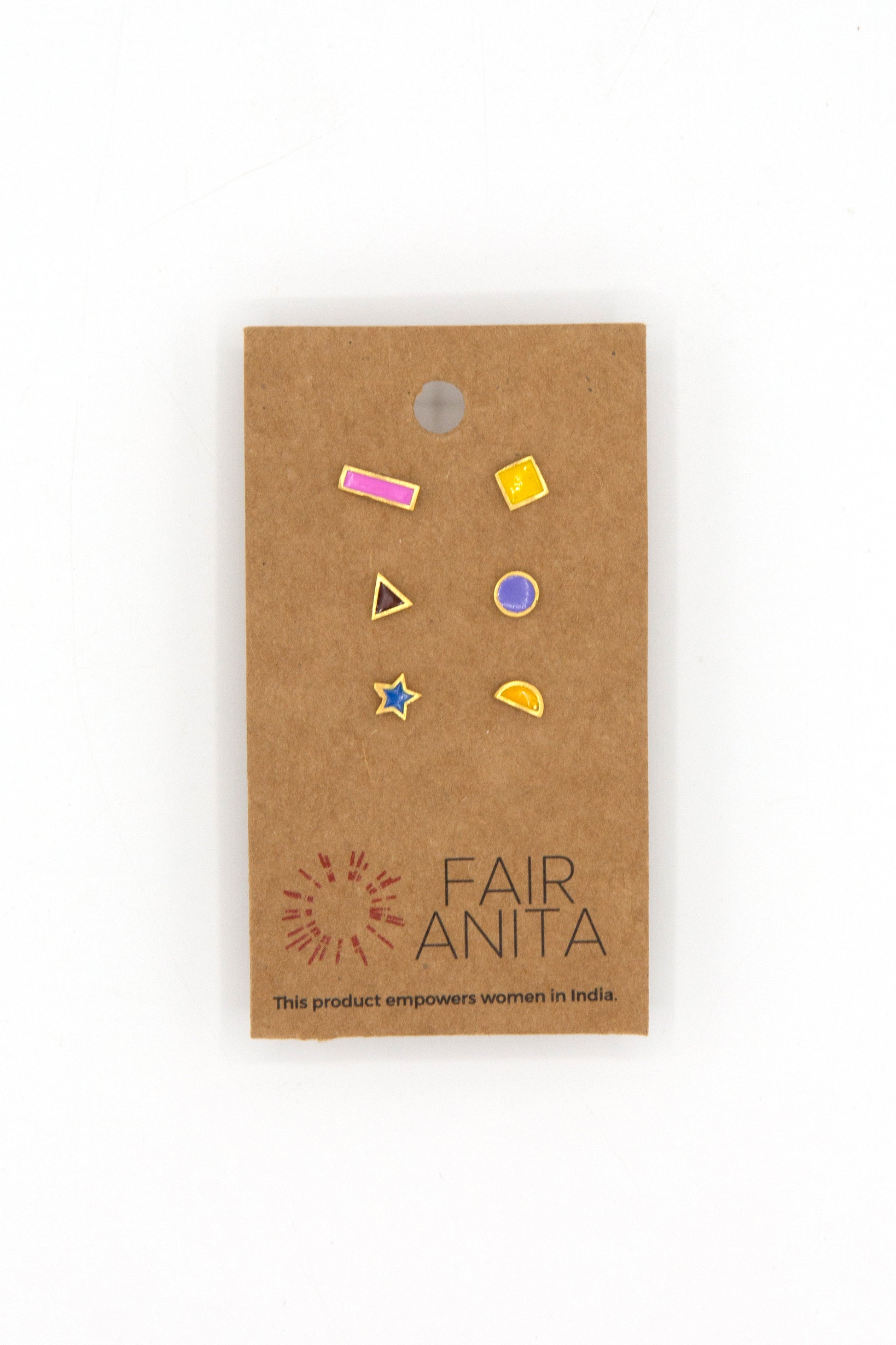 Keep it simple but super fun with mismatched tiny studs. Whether you have 1, 2, or more piercings, the combinations are endless. If you love bold or dainty earrings, this ethical colorful shape stud set is the perfect way to add a bit of playfulness to your look.