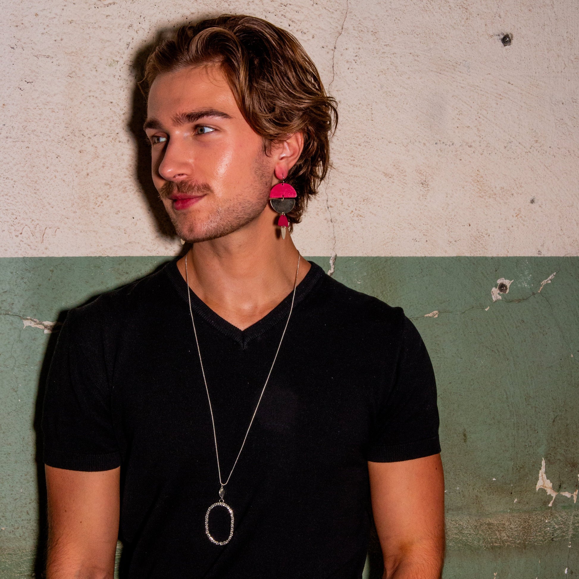 These are very lightweight for their bold size. The half circles connected together create an organic vibe, while the alternating colors and metallic create a structure for these trendy statement earrings.